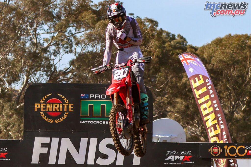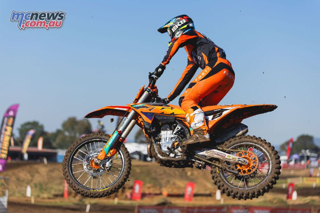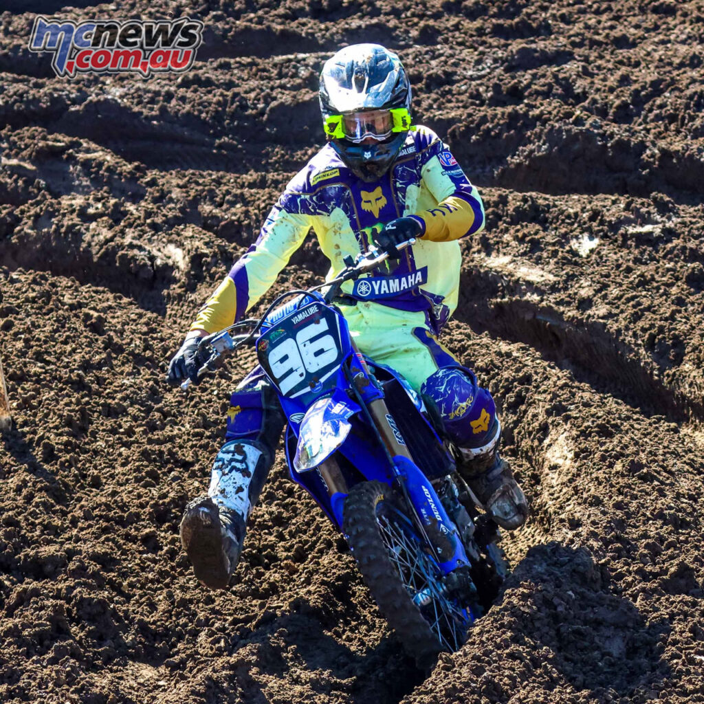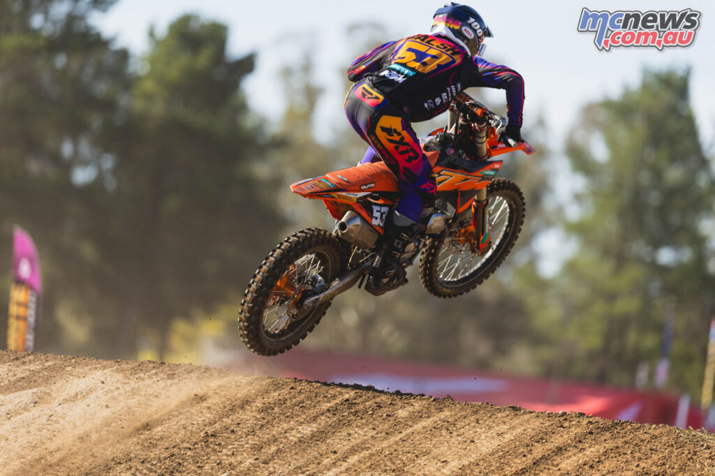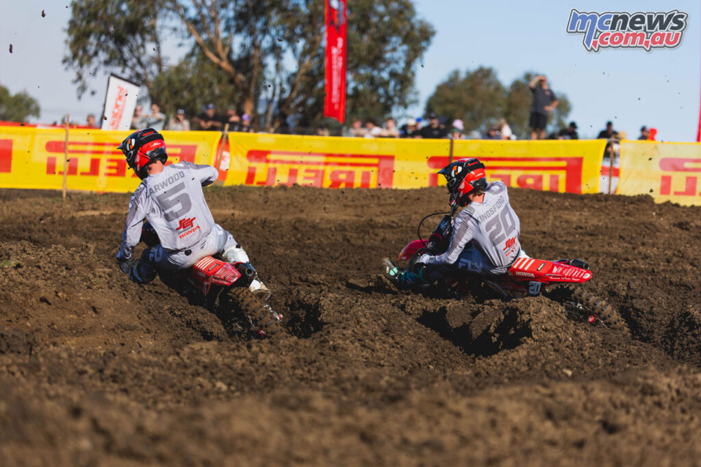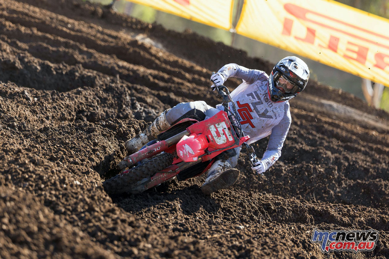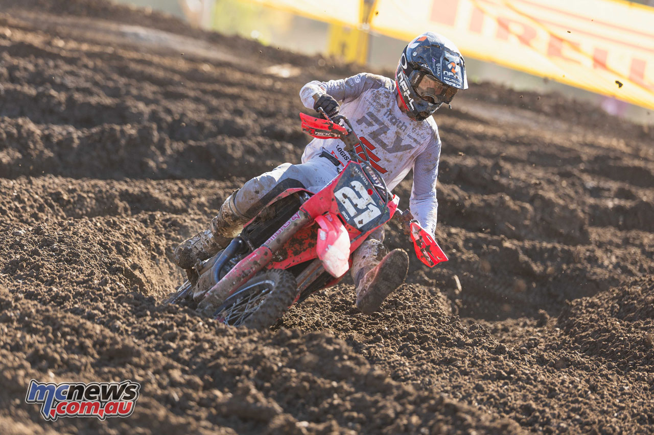 Kayd KingsfordLarwood’s first moto was compromised after contact bent his gear shifter and left him effectively stuck in second gear, but his response in the final race was emphatic.