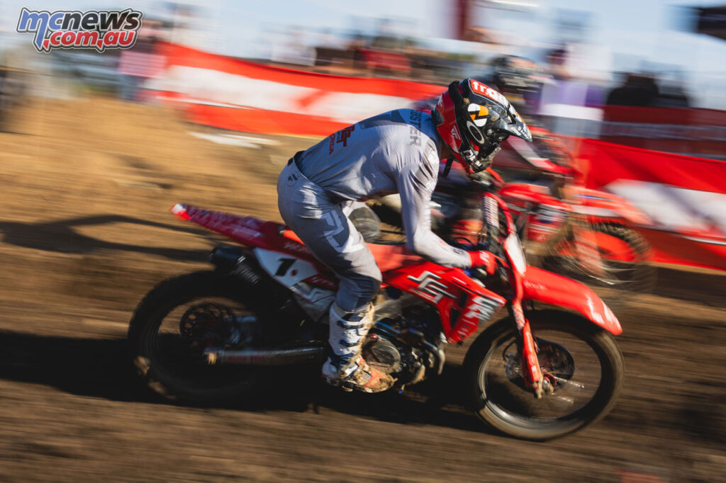 Heath Davy was sixth overall in his return from injury, while Honda’s Heath Fisher showed front-running pace with third in moto one before a crash in race two dropped him to ninth for the round.