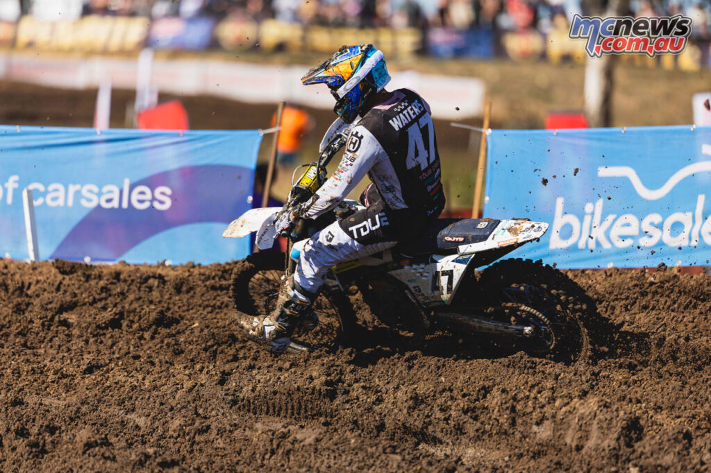 Todd WatersZac Watson pushed through illness to finish sixth overall for KTM, while Dean Ferris showed genuine pace for Kawasaki, but crashes in both motos left him eighth for the round. Ferris still underlined his speed with the second-fastest lap of race two, while teammate Brad West improved across the day on the way to 12th overall.