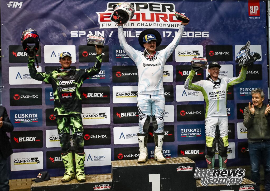 Billy Bolt opened the 2026 FIM SuperEnduro World Championship with the overall win at the opening round in Gliwice, Poland and backed that up at round two in Germany to extend his lead in the 2026 FIM SuperEnduro World Championship with a maximum points haul. He did it again in Spain overnight at round three…