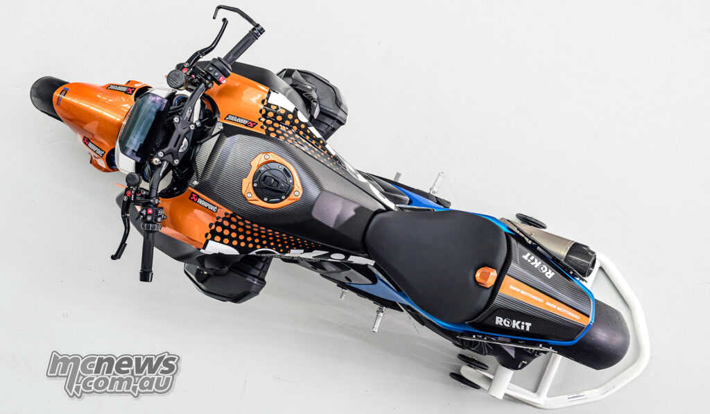 Painted components reference the period BMW R 90 S colour scheme.BMW says the Superhooligan will be displayed alongside the Butler & Smith BMW R 90 S and key figures from that 1976 season.