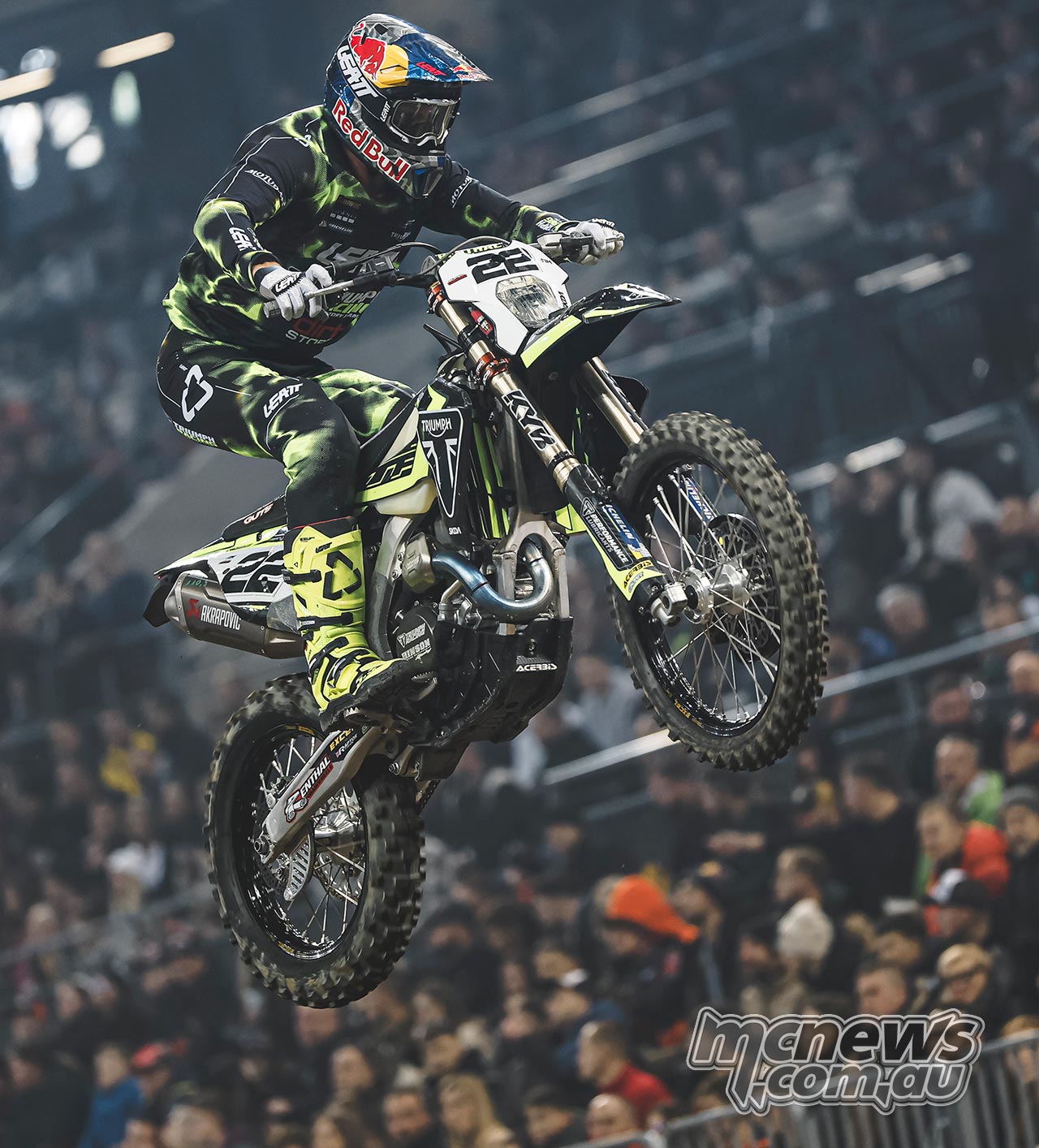 Jonny Walker navigating the obstacles at the PreZero Arena aboard the Triumph TF 450-E.Bolt recovered from a mistake to take second after setting the fastest lap of the race, while Ashton Brightmore claimed third. Garcia finished eighth and Lettenbichler 11th.