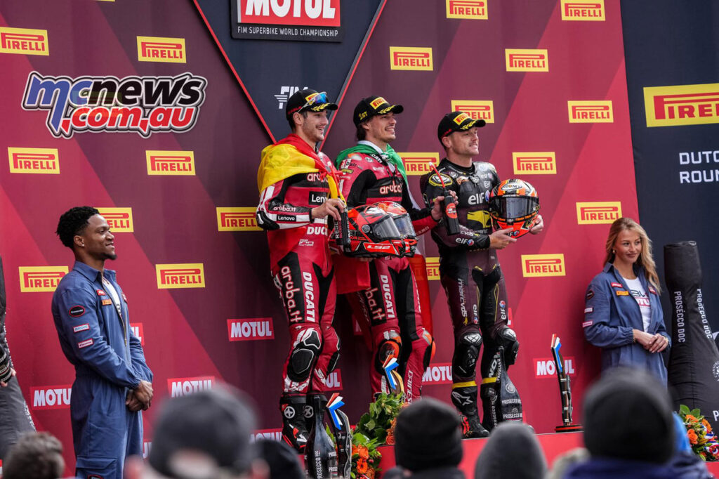 Sunday at TT Circuit Assen began with the 10-lap WorldSBK Superpole Race and ended with Ducati in even firmer control than it had shown on Saturday. Bulega’s weekend maximum pushed his title lead out again, and for the first time ever, a single manufacturer swept the podium in all three races of the weekend.