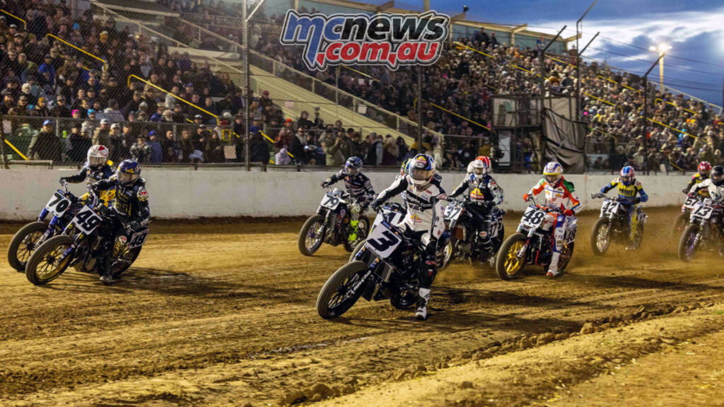 Kage Tadman – 2026 American Flat Track – Round Three – Ventura Short Track – Image by Tim LesterFrom there, Drane kept the pressure on to the flag. The Australian’s Yamaha bucked and moved around underneath him as he searched for one final opportunity, and he came closest on the last lap, but still finished a wheel short at the stripe. Tadman’s second Ventura victory was enough to deny Drane while Trevor Brunner recovered from a poor start to snatch third after reeling in Lowe late. Lowe’s fourth-place finish matched his career best, while Tarren Santero charged from the back of the field, having qualified through the Last Chance Qualifier, to take fifth.