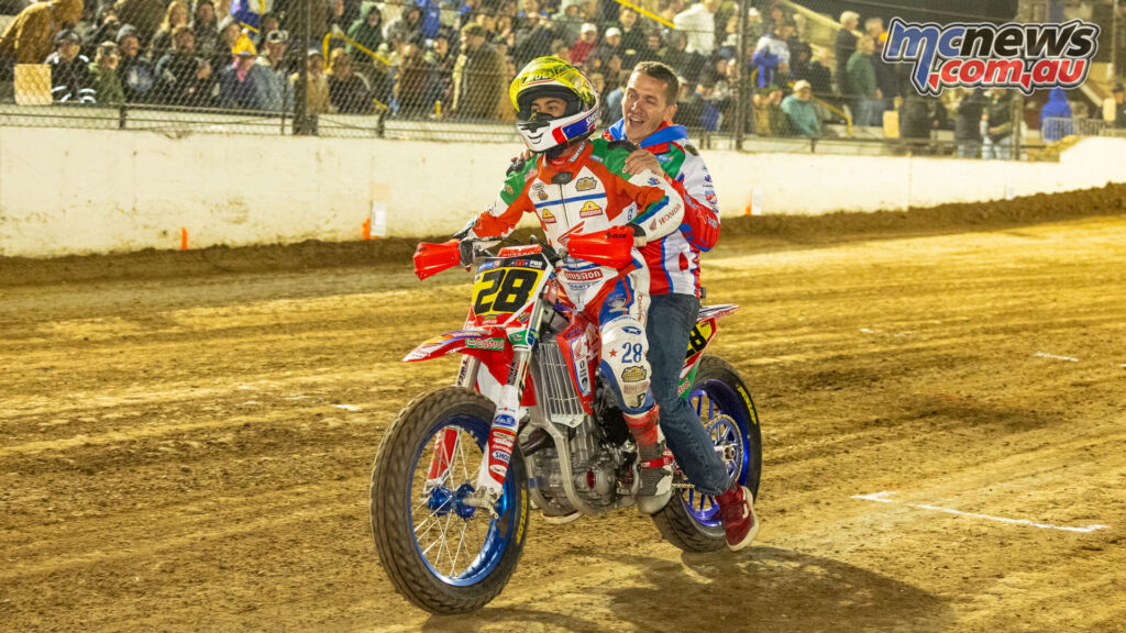 “I got a little bit greedy the first three rounds. I kind of led the team in a difficult direction. We wanted to bite off more than we could chew, and we got a little ahead of ourselves. So apologies to Rick Ware Racing and the whole family, but this is where we belong. I love coming here. I see my friends. I see my family where I grew up. I’m a pretty good Short Tracker, so I enjoy riding this track in general… I’m so proud of my guys. We did something massive tonight.”