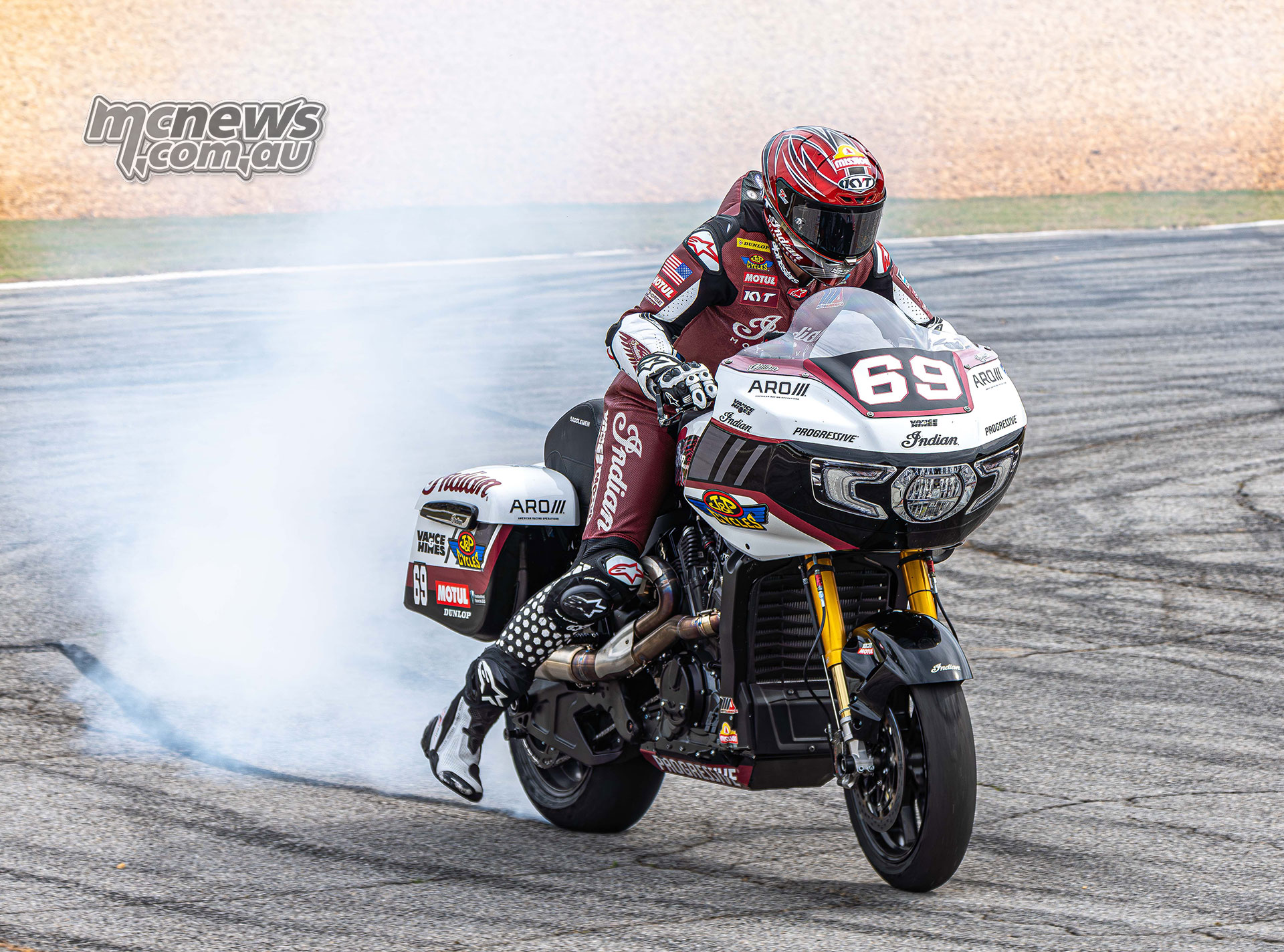 Saturday winner Hayden Gillim suffered no such misfortune, firing his Indian Challenger off the line to grab the holeshot and immediately take control of the nine-lap contest.