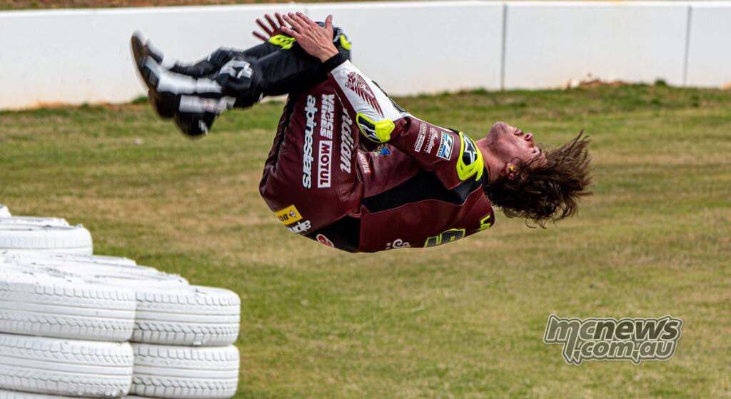 2026 Moto America – Road Atlanta – KOTB Race Two – Rocco Landers celebrates second place with a backflip – Image by Richard GergelySmith was the first Harley-Davidson rider home in fourth, ahead of O’Hara and James Rispoli. Wyman, meanwhile, started from pit lane and steadily advanced from 11th to seventh by the flag, salvaging some valuable points from a race that had looked like a write-off before it even began.