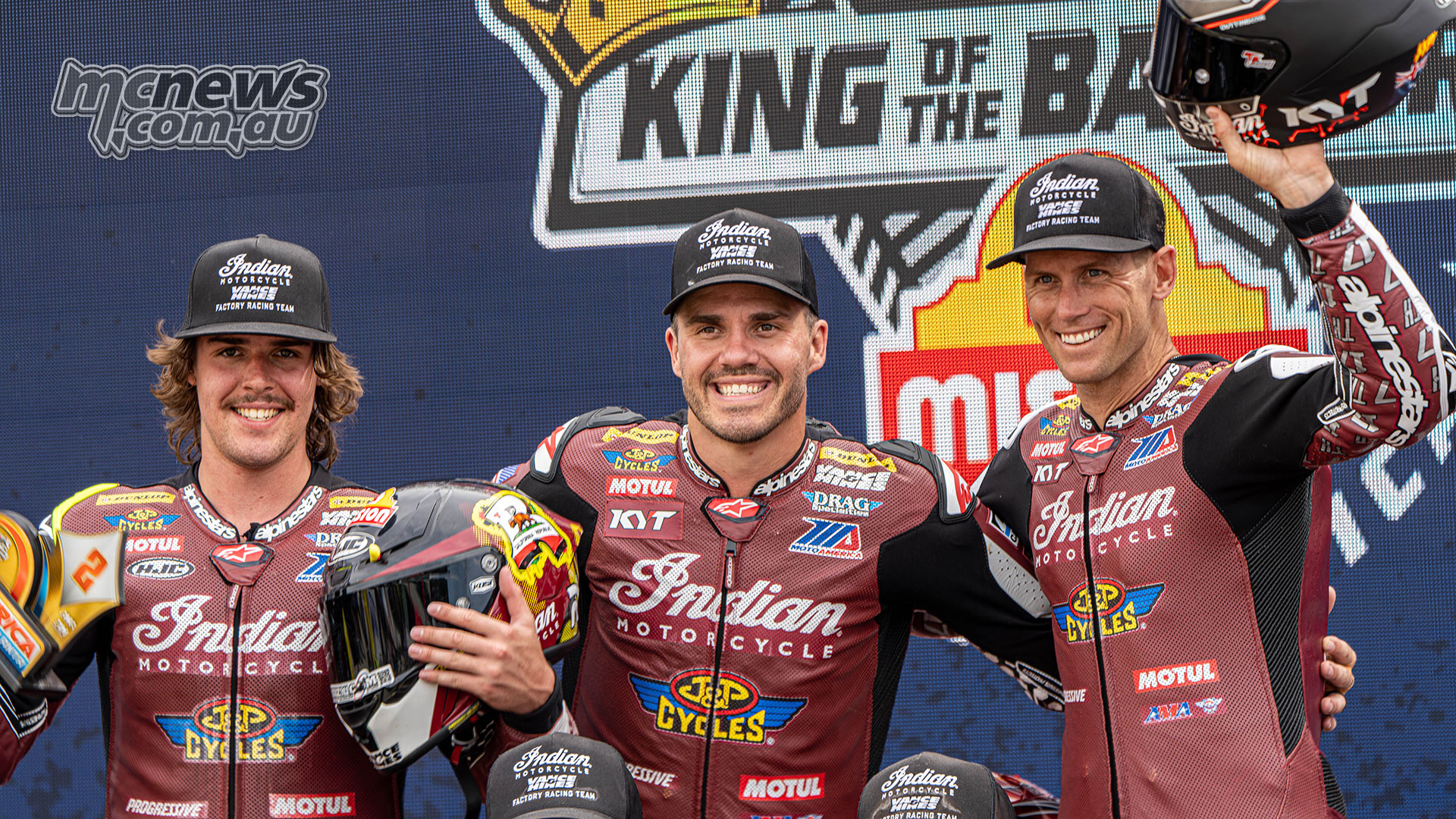 King of the Baggers Race One – Bradley Smith – Image by Richard GergelyRocco Landers finished fourth on the third factory Indian, while Tyler O’Hara was fifth after running third on the opening two laps before slipping back as the race unfolded.