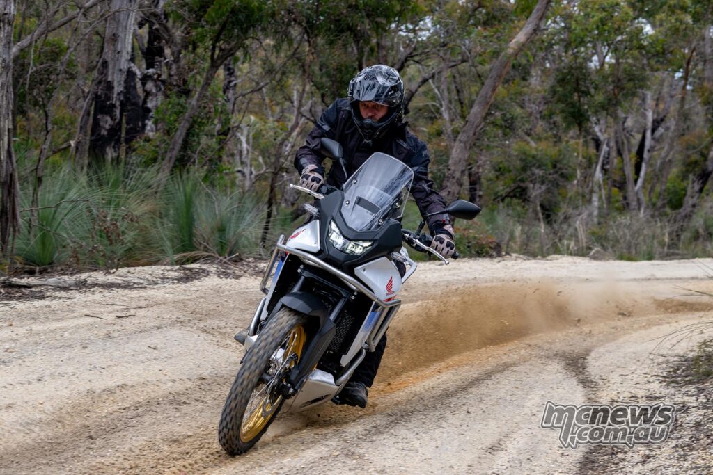 Even though it does its best work on sealed stuff, it’s now surprisingly adept on gravel tracksIf, like me, you’d want to get a little gravel under your tyres, I’d be sure to tick the option for the crash bars and bash plate as fitted to the bike I tested – without them, the sump looks a little exposed. I’d then throw on a set of Barkbusters and the quick-shifter mentioned above and be done.