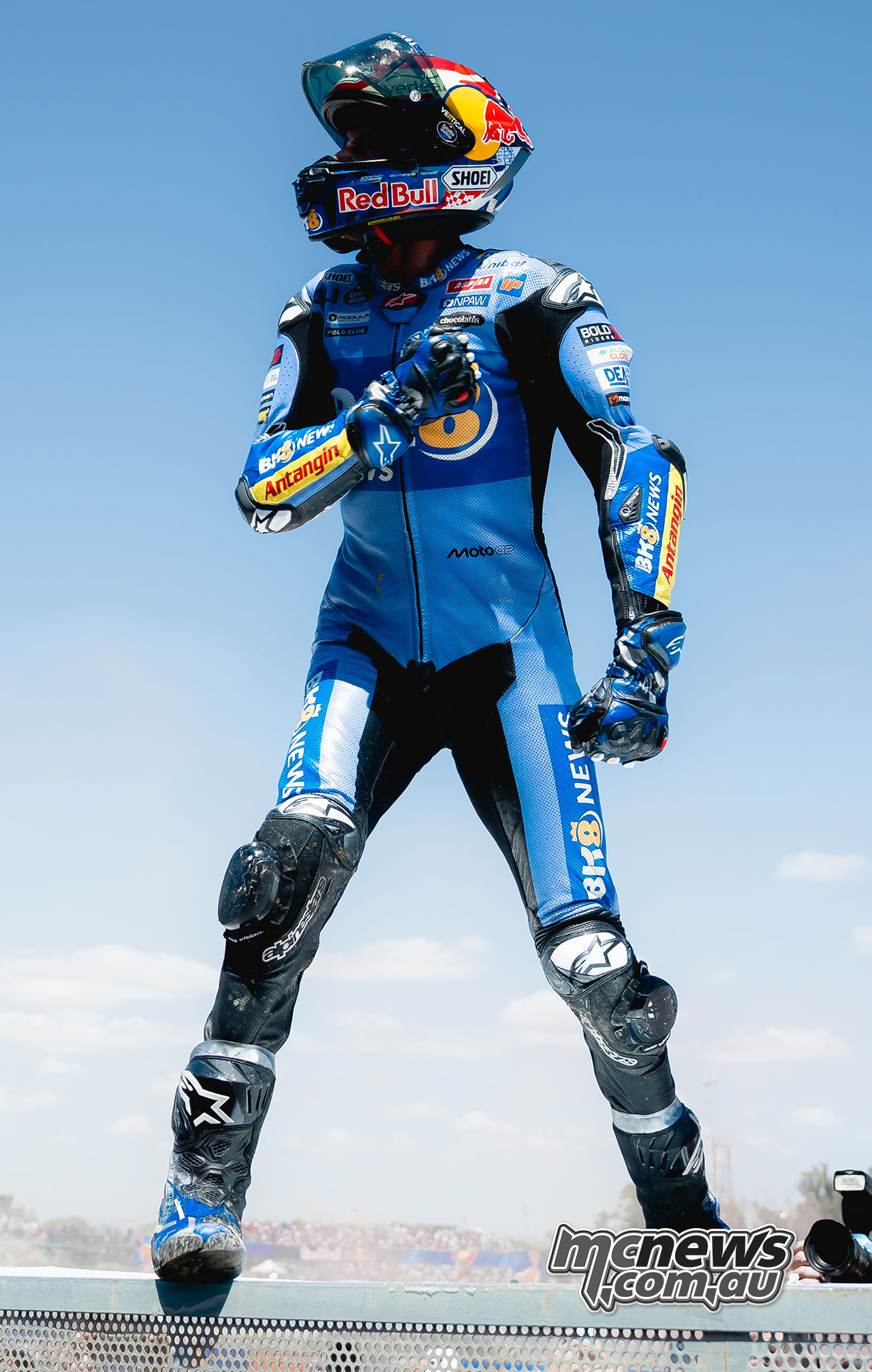 Marco Bezzecchi celebrates second place and another strong Aprilia result.Fabio Di Giannantonio – P3