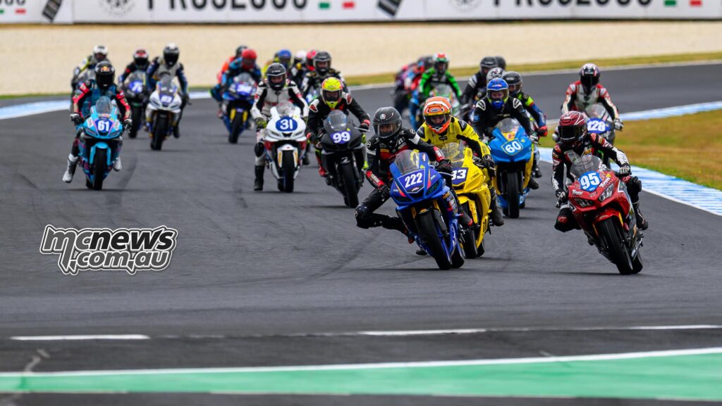 ASBK 2026 – Round One – Phillip Island – Supersport 300 Race Three – Image RbMotoLensThey finally fronted the starter at 0922.
