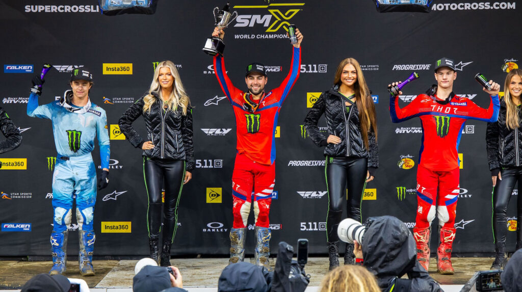Behind the podium, Joey Savatgy finished fifth overall for Honda, Lawrence was sixth, Malcolm Stewart placed seventh for Husqvarna on 4-6-12 results, and Hill’s late-race charge in the final leg helped lift the KTM rider to eighth overall.