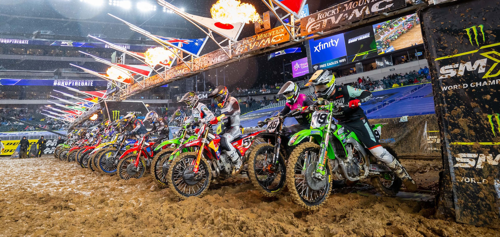 Lincoln Financial Field hosted a rain-hit Round 15 of the 2026 Monster Energy Supercross Championship in Philadelphia.Intermittent rain showers throughout the night program created constantly evolving track conditions, forcing riders to adapt lap by lap as ruts deepened and traction disappeared. The result was a night where mistakes were costly, comebacks were common, and championship outcomes shifted in real time.