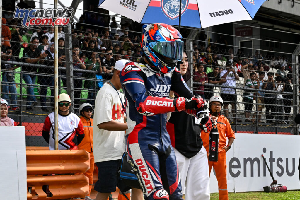 Syahrin had shown his hand early by topping combined practice on the JDT Ducati with a best lap of 2m05.549s, and that pace translated directly into race trim. Once the lights went out in Race One, he was immediately in command, broke the field early, and then managed the gap with the sort of composure expected of a defending champion.