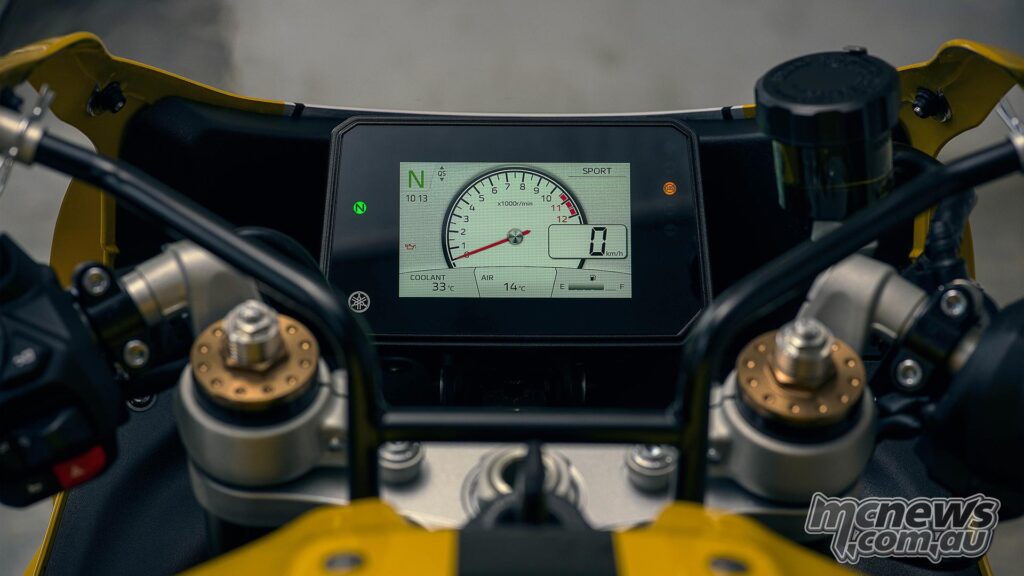 Yamaha calls it a Sport Heritage model, and visually it nails that brief. The Kenny Roberts – hallowed be thy name – inspired yellow livery looks fantastic in photos and even better in the flesh, but underneath the nostalgia sits a genuinely well-sorted modern sportsbike.
