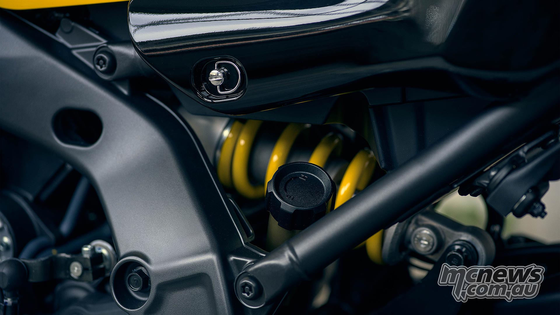 Fully adjustable 41 mm KYB forks give the XSR900 GP a more serious front end than the standard XSRThe suspension tune is tweaked according to the ride position, so it is slightly firmer up front and actually a little softer in the shock – to suit a more weight-forward riding position. I’m just under 90 kilos and had no need to touch the clickers. Just get on and enjoy.